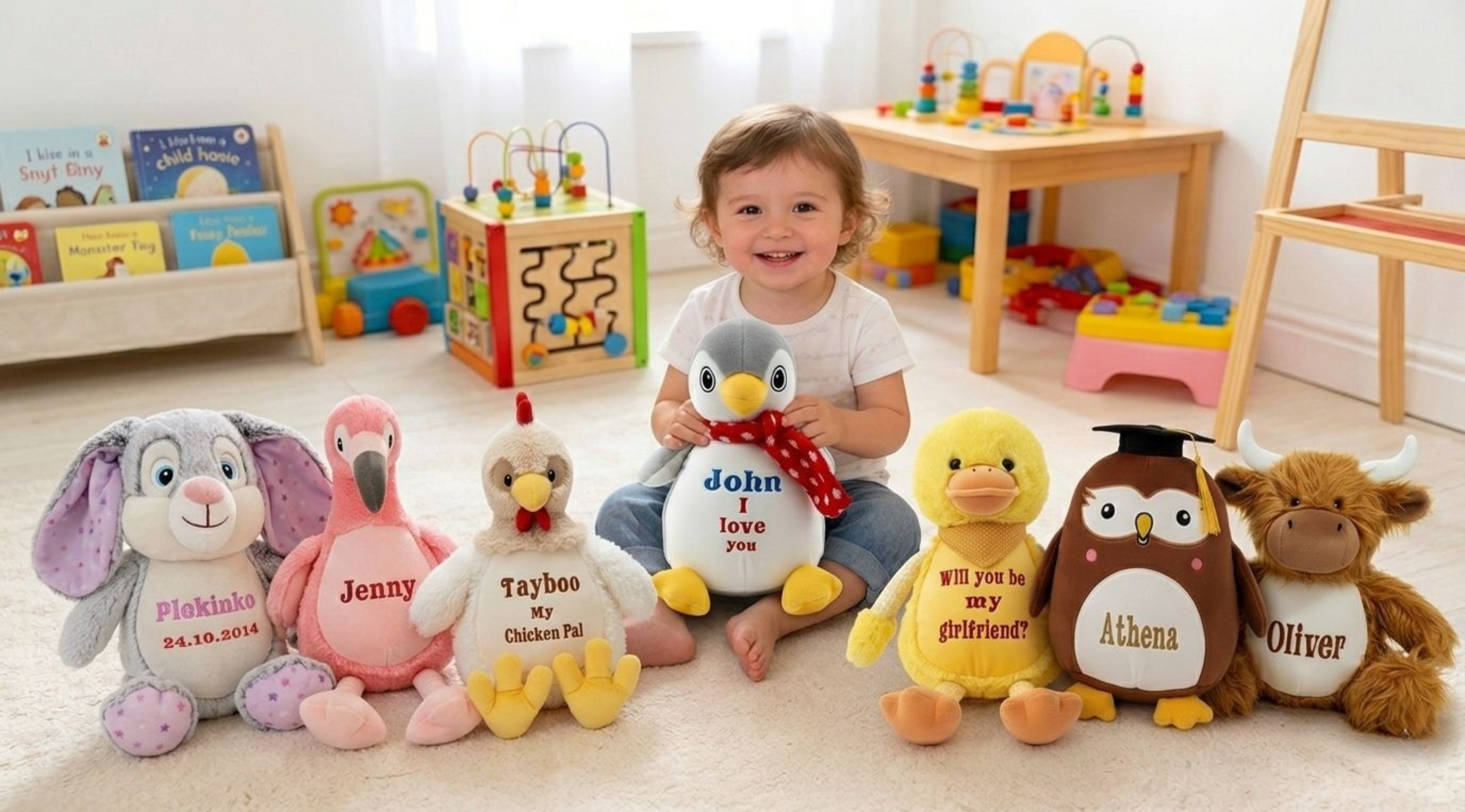 Beautifully soft plush toys, personalised with embroidered names, dates, or messages. Thoughtfully embroidered to create keepsakes for babies, children, and adults alike.